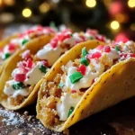 What makes Christmas Cheesecake Tacos so special? For starters, they are not your typical dessert. The combination of a light cheesecake filling and a crunchy shell creates a perfect fusion of textures and flavors. It’s a unique twist on holiday desserts, making them a standout at any Christmas gathering. Plus, the festive vibe they carry, especially when adorned with colorful sprinkles and fruits, adds a touch of cheer to your dessert table.