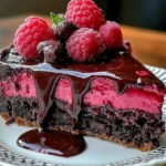 Dark Chocolate Raspberry Cheesecake is special for many reasons. Its uniqueness lies in the use of high-quality dark chocolate, which not only enhances the cheesecake’s flavor but also adds a touch of elegance. The raspberries not only offer a vibrant splash of color but also introduce a delightful tartness that balances the richness of the chocolate beautifully.